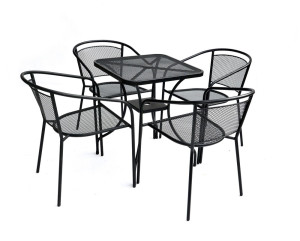 Kovový zahradní stůl s drátěnou vrchní deskou čtvercového tvaru. Výborně se kombinuje se všemi typy kovového zahradního nábytku. Je lehce udržovatelný a omyvatelný. Stůl je vyrobený z tahokovu. Jedná se o kovovou mřížovinu, kdy je plech během výroby střižen a natažen a dochází tak ke vzniku typického mřížkovaného provedení. Díky tomuto materiálu se jedná o odolný a praktický výrobek.