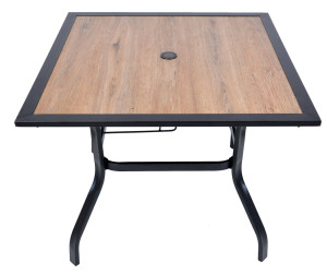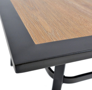Dotaz na produkt Na splátky ještě dnesOdolný kovový zahradní stůl. Ocelová konstrukce stolu nabízí dostatečnou stabilitu. 5 mm silná stolová deska z polywoodu v dekoru dřeva poskytuje dostatečný, rovný povrch ke stolování.Konstrukce je lakovaná černou práškovou barvou. Výborně se kombinuje se všemi typy kovového zahradního nábytku. Je lehce udržovatelný a omyvatelný.