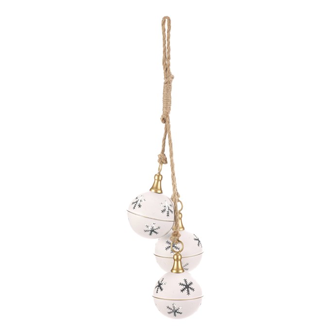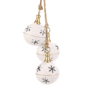 Dotaz na produktTři velké kovové rolničky v bílých barvách a svázané na provázku, vytvoří výraznou závěsnou dekoraci, která zaujme na první pohled. Pro svou velikost a váhu se nehodí na klasický stromeček, ale skvěle vyniknou samostatně, ale třeba na dveřích, stěně nebo venku na vzrostlém smrku.