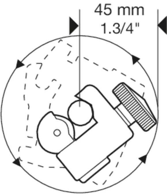 - praktické zhotovení s velmi malým pracovním poloměrem (45 mm příp. 1.3 / 4”) umožňuje práci ve stísněných prostorech