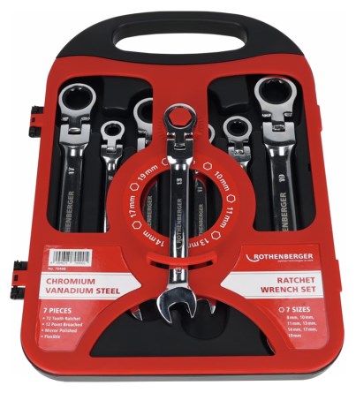 ROTHENBERGER ROCLICK klíč kombinovaný 8-19mm, ráčnový, očkový, 7-dílná sada, chrom/vanadiová ocel
