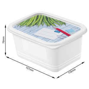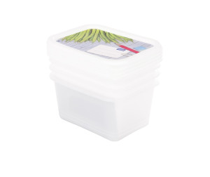 Dotaz na produktSada dóz do mrazničky 4 x 0.75 L Dózy na skladování a zmrazování polévek, jídel, potravin - pro mrazení do -40°. Lze mýt v myčce na nádobí. Bílé úložné krabičky s motivem na víku - fazole. Vzduchotěsné víko zajistí delší trvanlivost potravin a izoluje aroma. Rozměr jedné dózy 15,7 x 11,8 x 7,6 cm.