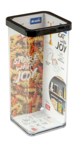 Dotaz na produktDóza LOFT o objemu 1,5 L. Dózy na potraviny z řady LOFTse vyznačují moderním designem a vysokou kvalitou zpracování. Jsou plně transparentní, se silikonovým těsněním ve víku. Zajišťují čerstvost skladovaných produktů a chrání před vnějšími vlivy a vlhkostí. Materiál neobsahuje BPA a je schválen pro styk s potravinami. Vhodné do myčky, ledničky či mrazáku. Kvalita od švýcarské značky Rotho.