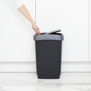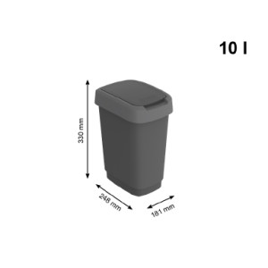 Dotaz na produktPlastový odpadkový koš s odklápěcím víkem. Dva způsoby otevření koše. Objem:10litrů. Kvalitní materiál a provedení od švýcarské značky Rotho.