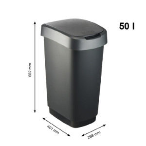 Dotaz na produktPlastový odpadkový koš s odklápěcím víkem. Dva způsoby otevření koše. Objem: 50 L. Kvalitní materiál a provedení od švýcarské značky Rotho.