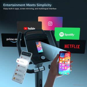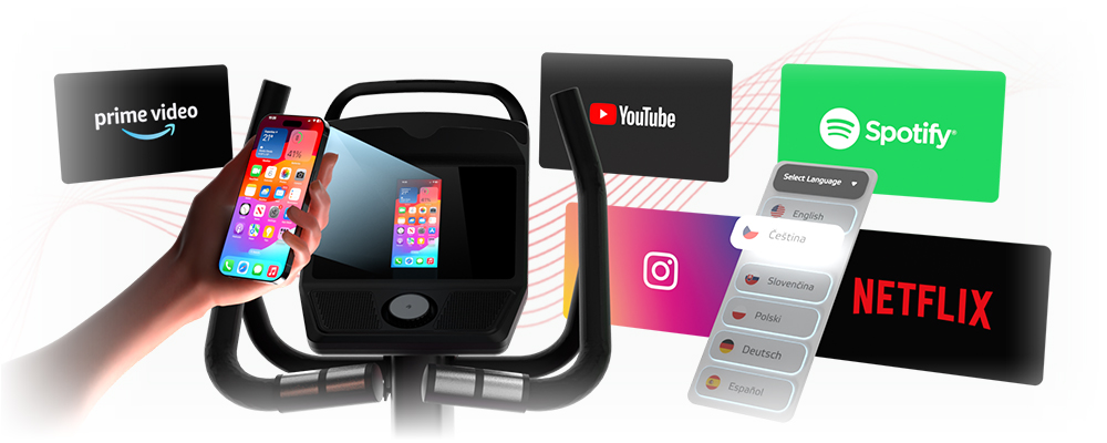 Smart konzole přináší úplně nový rozměr domácího tréninku. Nabízí funkci zrcadlení obrazovky mobilu, podporu češtiny, slovenštiny i polštiny a zábavní programy, které trénink promění v příjemně strávený čas. Navíc umožňuje připojit Bluetooth sluchátka a sledovat třeba Netflix nebo YouTube, aniž byste rušili okolí – šlápnete do pedálů a seriál běží spolu s vámi!