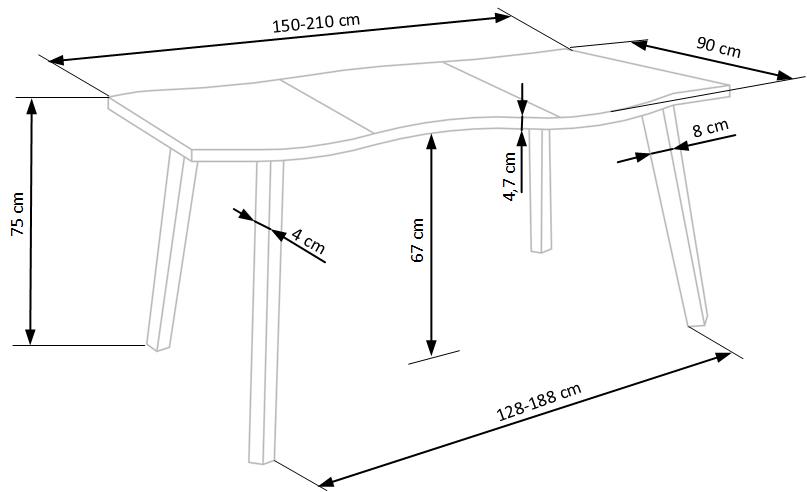 Rozkládací jídelní stůl se dodává v nápaditém a moderním designu. Nohy jsou vyrobeny z ocele.