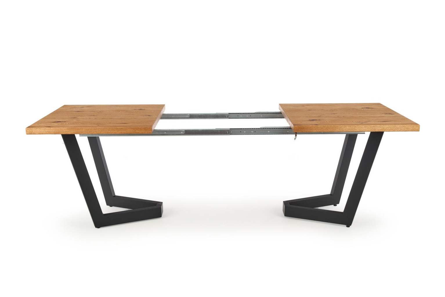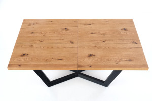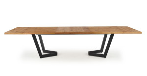 Jídelní stůl je vyroben v kombinaci desky, masiv a kov.