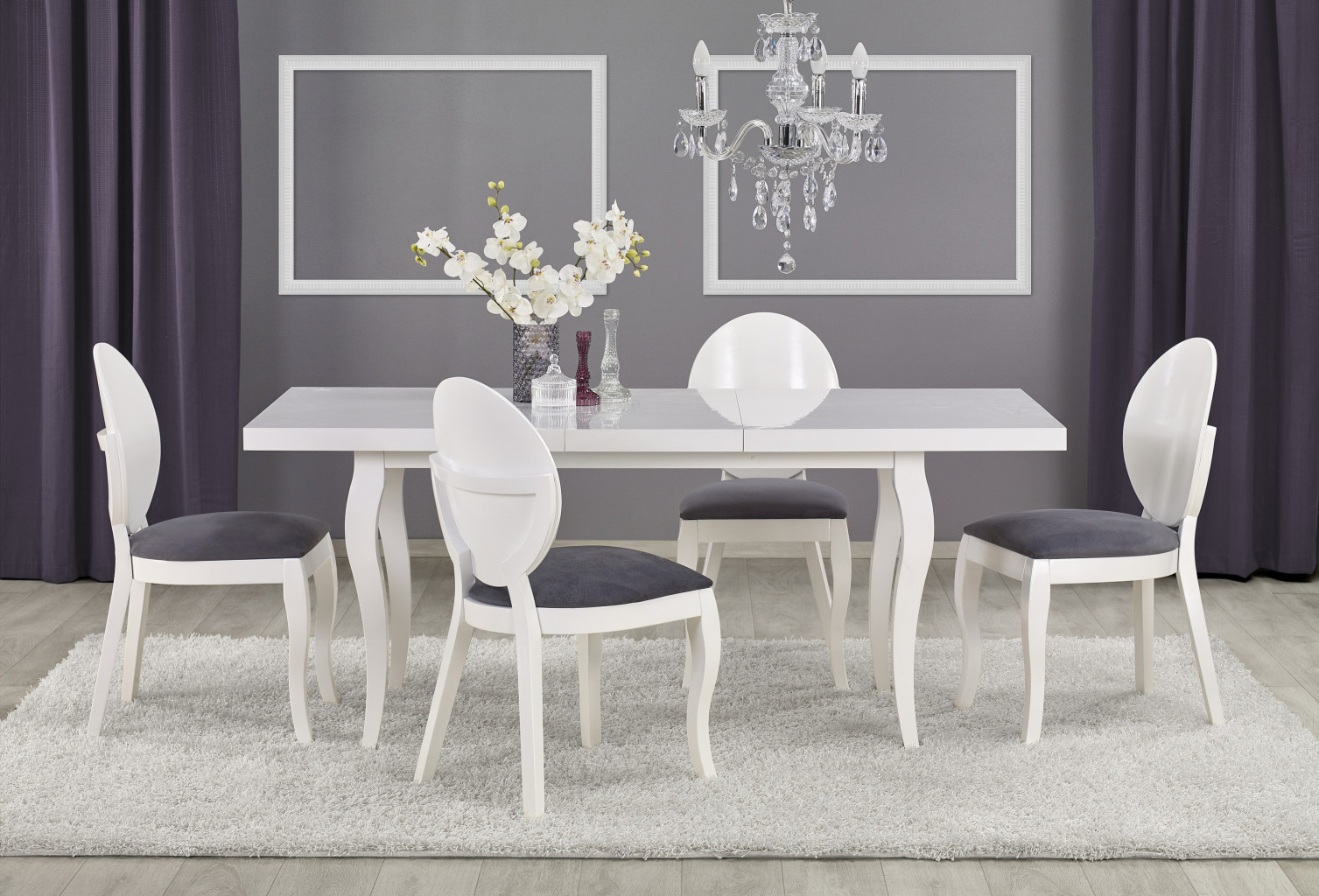 Jídelní rozkládací stůl Mozart je vyroben v kombinaci laminovaná MDF a masiv. Deska a konstrukce stolu je vyrobena z bílé lakované MDF desky a nohy jsou z masivního dřeva. Ke stolu doporučujeme dokoupit jídelní židle Verdi