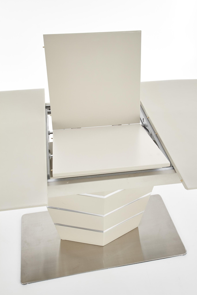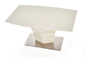 Rozkládací jídelní stůl Sorento je vyroben v kombinaci skla, lamina a ocele. Deska stolu je ze skla a lakované MDF desky a nohy stolu jsou z nerezové oceli. Ke stolu doporučujeme dokoupit jídelní židle K322.