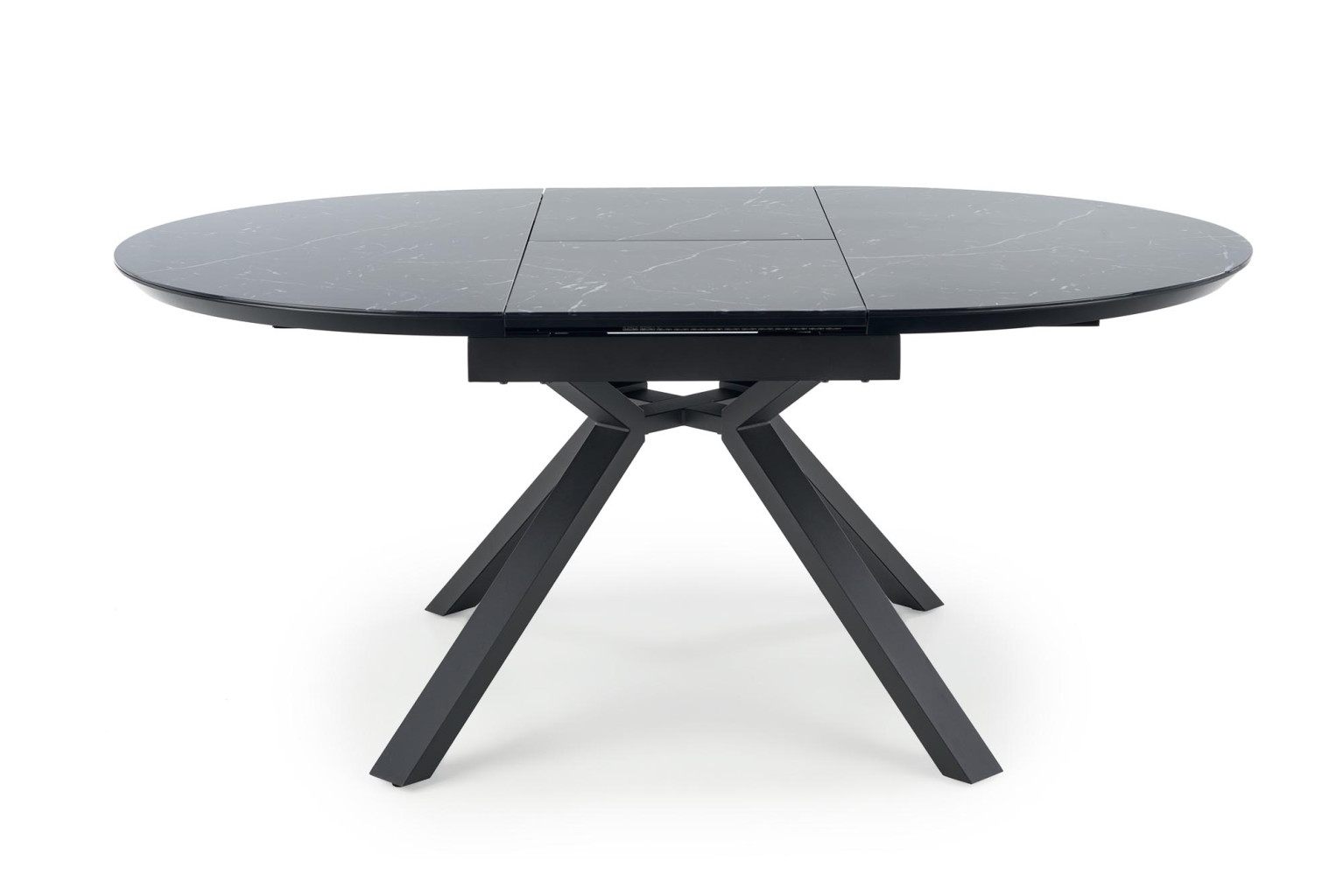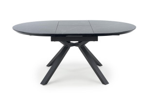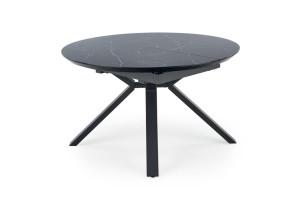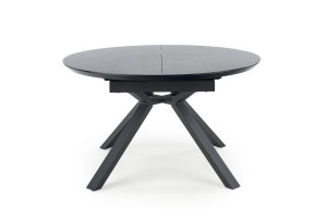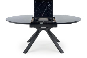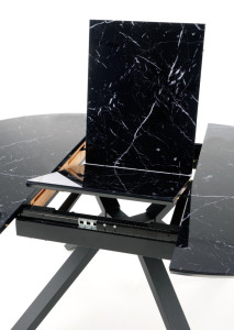 Jídelní stůl je vyroben v kombinaci skla, MDF a kov.