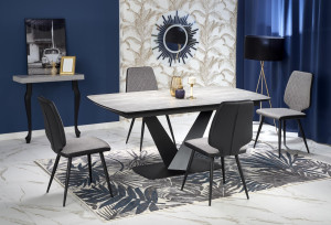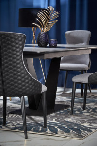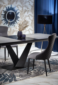 Jídelní stůl je vyroben v kombinaci MDF a kov.