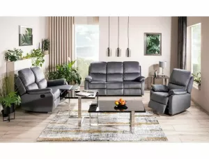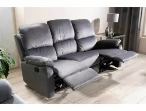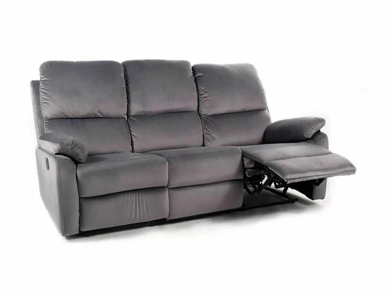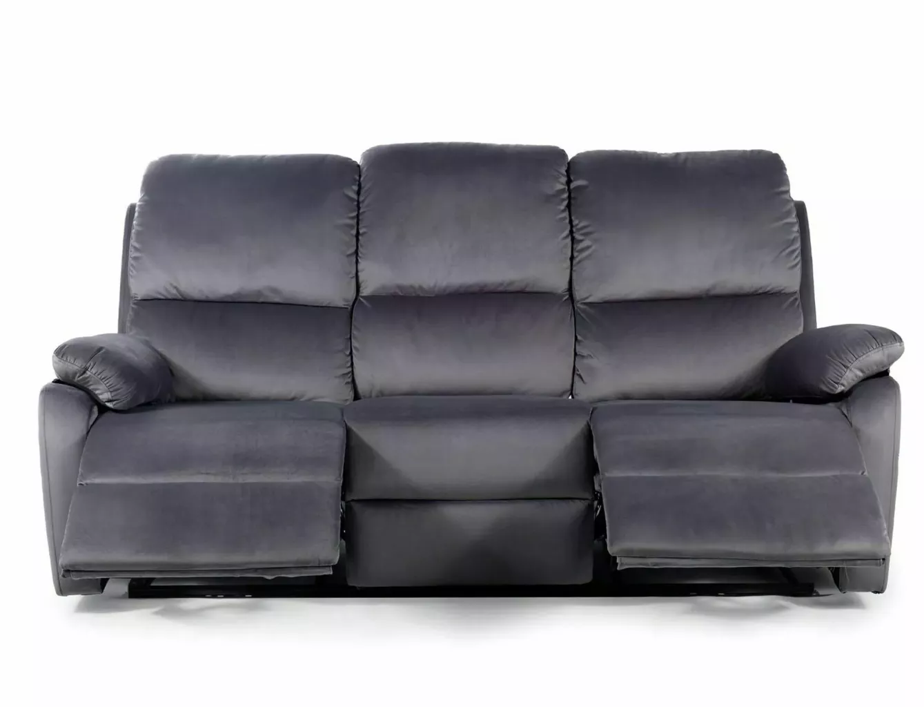 Dotaz na produkt Na splátky ještě dnesTřímístná pohovka s funkcí polohování, čalounění: sametová látka, rám: kov, barva: šedá / černá. Dvě krajní sedadla se dají rozložit, střední část je pevná. Rozměry pohovky: A - 101, B - 193, C - 48, D - 54, E - 94÷164, F - 5 cm.
