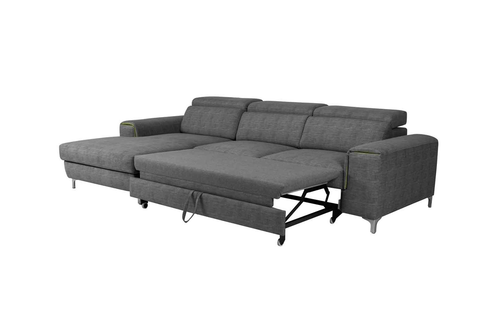 Rohová sedací souprava vyrobená z kvalitních materiálů poskytuje pohodlné posezení a zároveň se díky zajímavému modernímu designu stane dominantou každého obývacího pokoje. Konstrukce soupravy je vyrobena z kombinace dřeva a dřevotřískové desky, výplň sedáků tvoří polyuretanová pěna s pružinami typu Wave Spring. Pohovku lze rozložit a vytvořit tak spací plochu vhodnou pro příležitostné přespání.