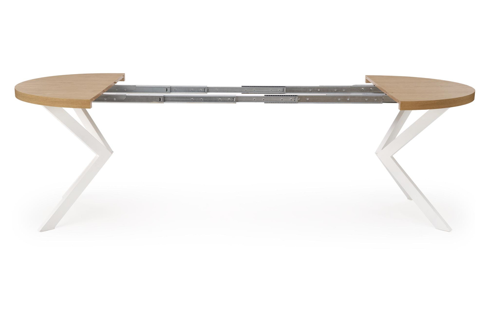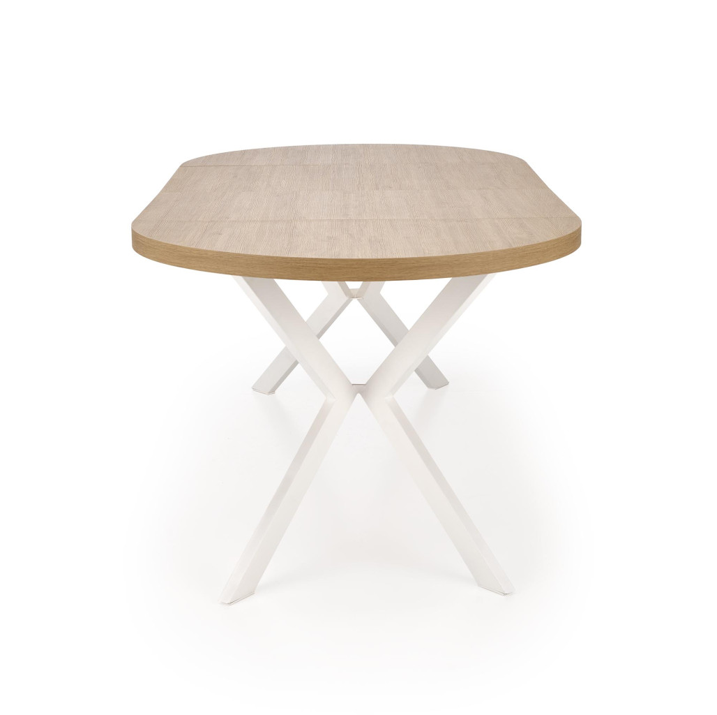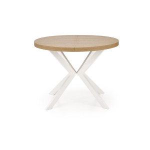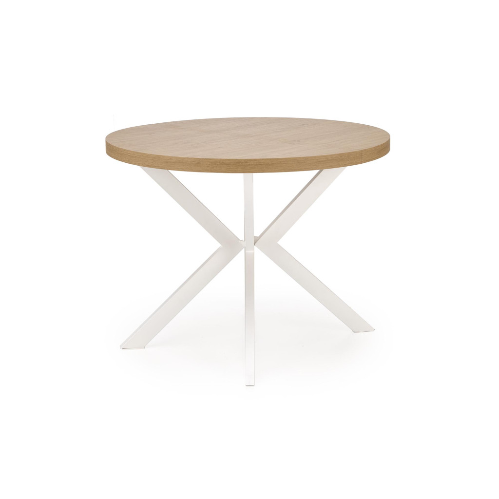 Dotaz na produkt Na splátky ještě dnesrozměry: fi100-250/100/75 cm, rozkládací stůl, materiál: dýhovaná nábytková deska / práškově lakovaná ocel, barva: zlatý dub - bílá