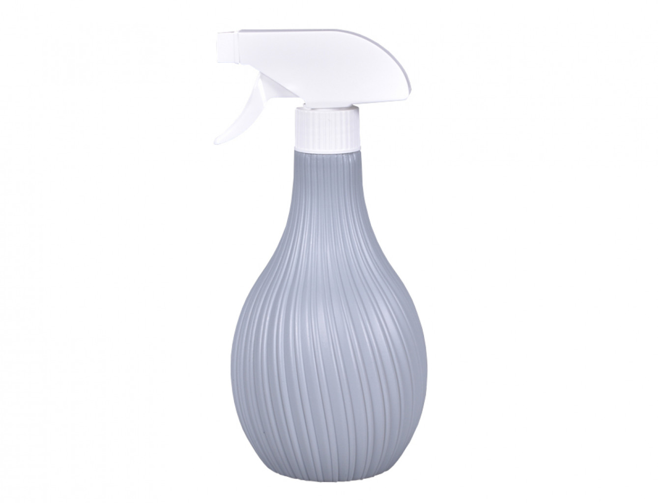 Dotaz na produktPlastový rozprašovač s dekorem rotujících proužků po obvodu. Barva: šedá. Objem: 600 ml. Průměr: 9,7 cm, výška: 21,5 cm.
