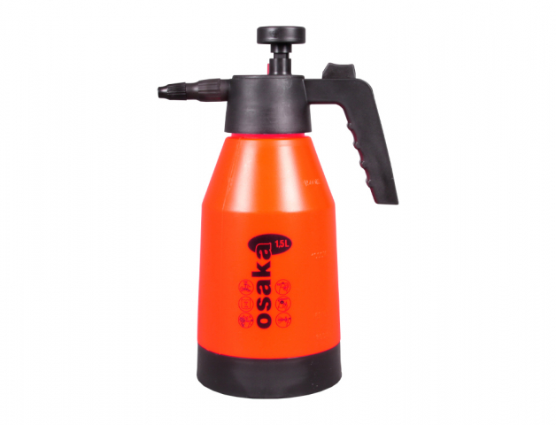 Dotaz na produktKuželovitý plastový oranžový tlakový rozprašovač s černou rozprašovací částí o objemu 1500ml, s rozměry: d. 13 x š. 21 x v. 31cm. Používá se k rosení, k hnojení postřikem na list a také k aplikaci chemických postřiků v interiéru i v exteriéru.
