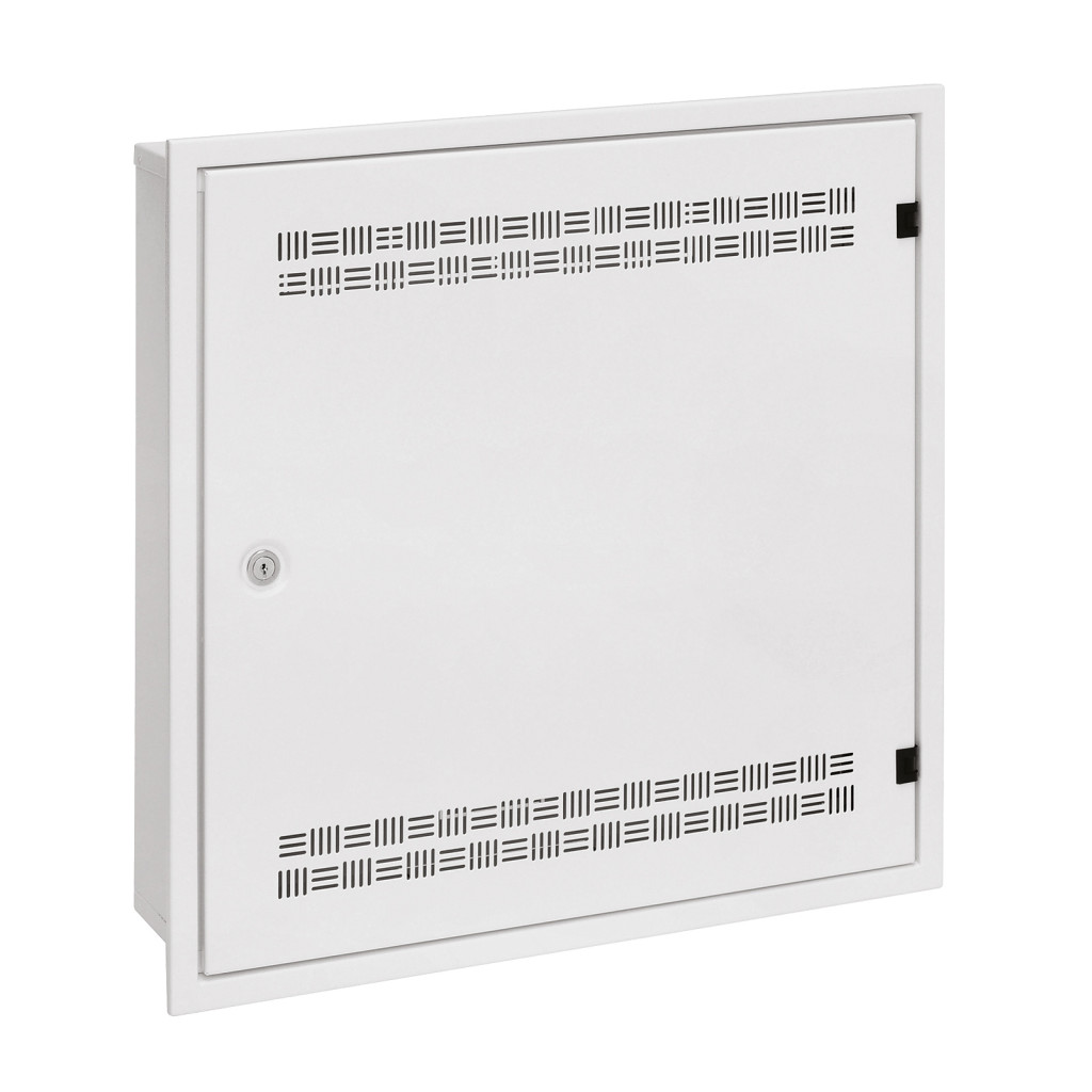 Rozvaděč instalujete do připraveného montážního otvoru ve zdi. Kabely dovnitř vedete předpřipravenými prostupy v zadní, horní a spodní části. Připravené otvory na skříni a rámu udávají správnou pozici pro sestavení. Pokud rám lícuje s dveřmi, je úhel otevření dveří zhruba 110 °, jakmile dveře z rámu vysunete, získáte 180° úhel otevření. Vybrat si můžete mezi levým a pravým zavíráním.