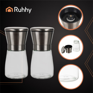 Dotaz na produktZvolte styl a funkčnost s moderními mlýnky RUHHY. Vyrobeno z průhledné sklo a zakončené kovovým víkem, které vám umožní kontrolovat množství koření a zároveň vypadají elegantně v každé kuchyni. Keramický mlecí mechanismus zajišťuje přesné ruční mletí a uvolňuje plnou chuť každého pokrmu. Tato praktická a stylová sada je ideální jak pro každodenní vaření, tak pro elegantní prostírání – protože skutečná chuť začíná čerstvě mletým kořením.