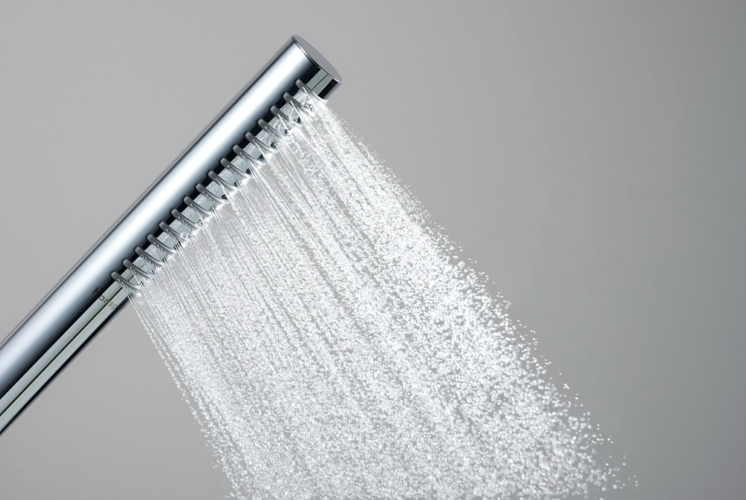 Trysky rozmístěné na ploše cylindrické sprchové hlavice zajišťují dokonalou distribuci vody. Tyčová ruční sprcha s nápadně minimalistickým designem upoutá pozornost a je dostupná v různých povrchových úpravách, od leštěného chromu přes černou a bílou barvu až po prémiovou metalickou povrchovou úpravu z kartáčovaného bronzu.
