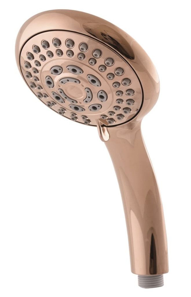 Ruční sprchová růžice antivápenná.plastováø 110 mmbarva zlatá růžová - lesklá5-polohovásprchová růžice má funkci EasyClean – jednoduché čištění drobných trysek sprchy (vznikající vodní kámen lze...