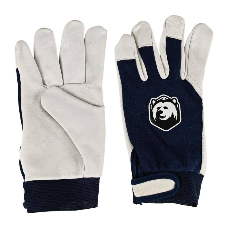 kombinované pracovní rukavicepoužití: průmysl, stavba, přeprava a skladovánírukavice šité z jemné lícové ovčiny v dlanimodrá bavlněná tkanina na hřbetumanžeta na suchý zipNormy: EN ISO 21420...