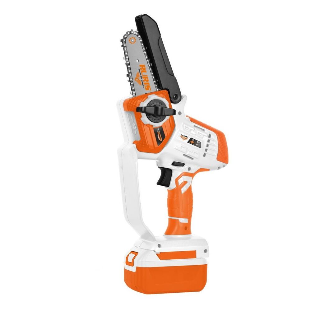 Akumulátorová teleskopická řetězová pila RURIS 1424 Power Alfa UP je vybavena komutátorovým elektromotorem a napájená je 20 V Li-Ion akumulátorem s kapacitou 4 Ah zajišťujícím vyšší výkon (akumulátor není součástí balení). Díky tomu má celkový výkon 80 Wh, takže dokáže řezat také tvrdé a hrubé dřevo.