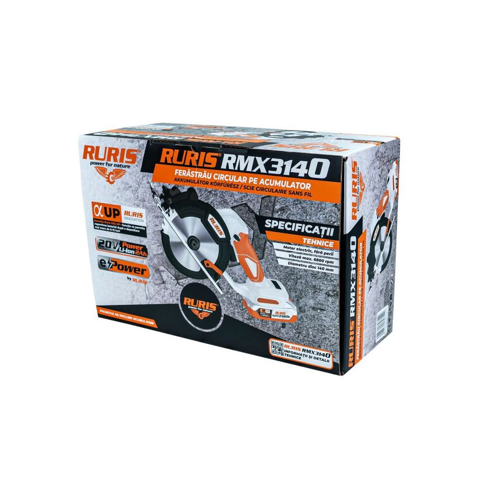 Okružní pila RURIS RMX3140 je napájena akumulátorem (akumulátor není součástí balení), díky čemuž nabízí mobilitu a flexibilitu při používání, eliminuje potřebu napájecího kabelu a umožňuje tak práci na těžko dostupných místech bez zdroje energie. Nářadí se snadno používá, spuštění je rychlé a snadné.