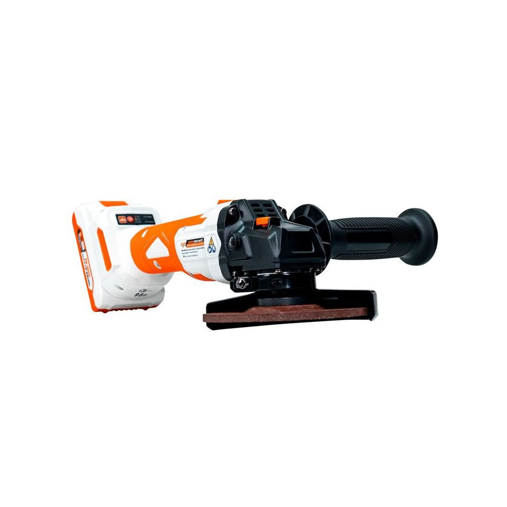 V balení se nachází 125 mm brusný kotouč, přídavná rukojeť se 2 polohami nastavení. Dodává se bez akumulátoru a nabíječky.