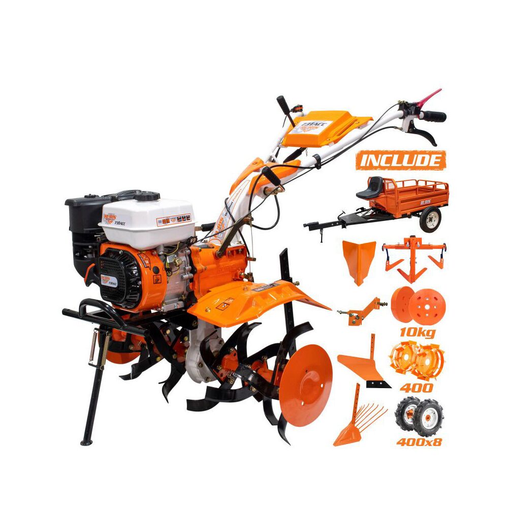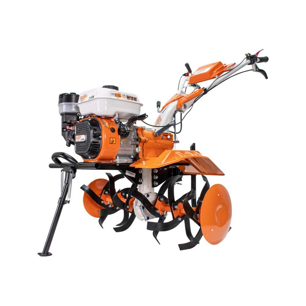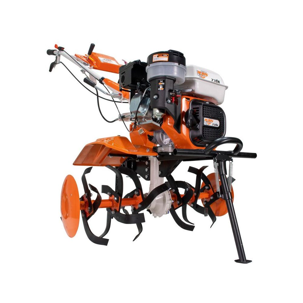 Kultivátor 731 pro obrábění půdy v zahradě nebo na poli, s připojeným příslušenstvím připraví půdu pro sázení semen.