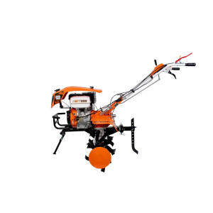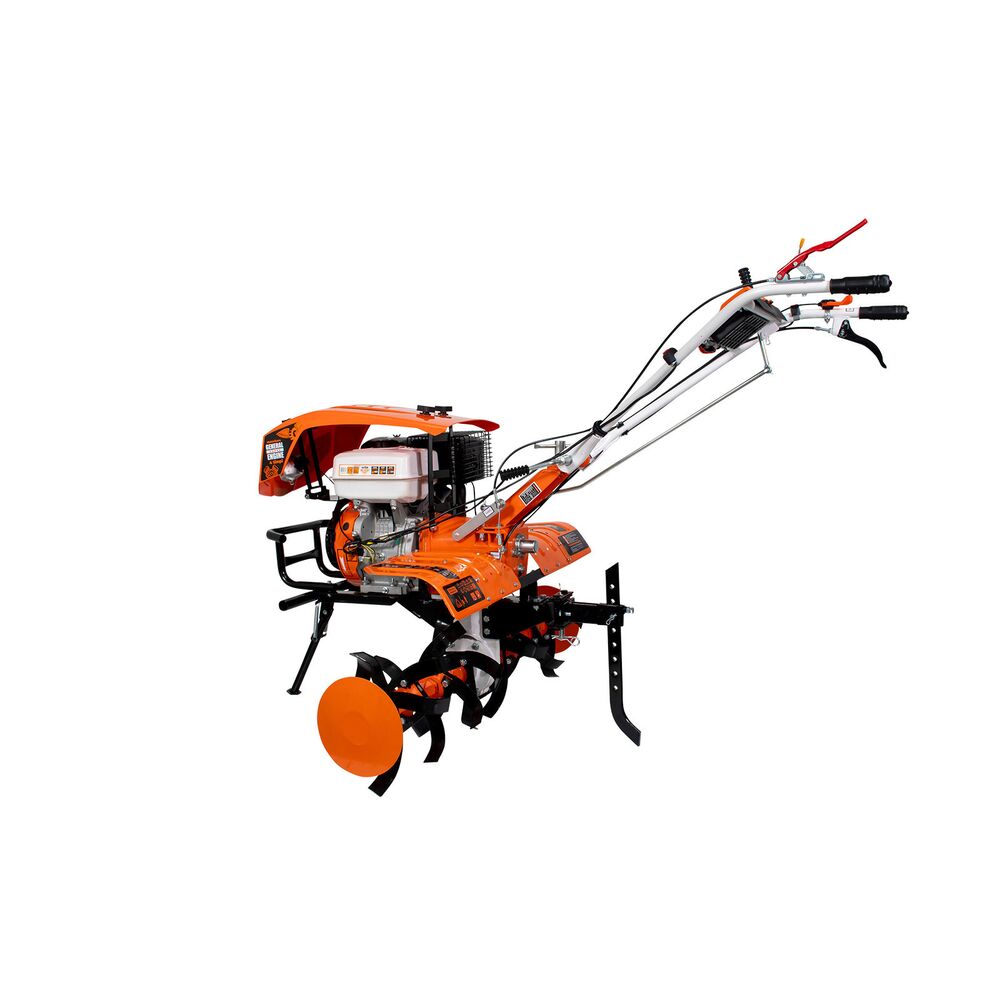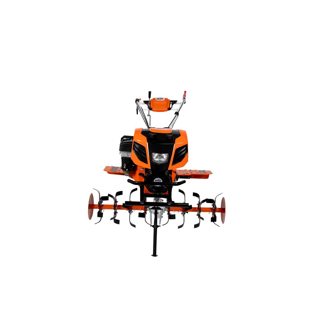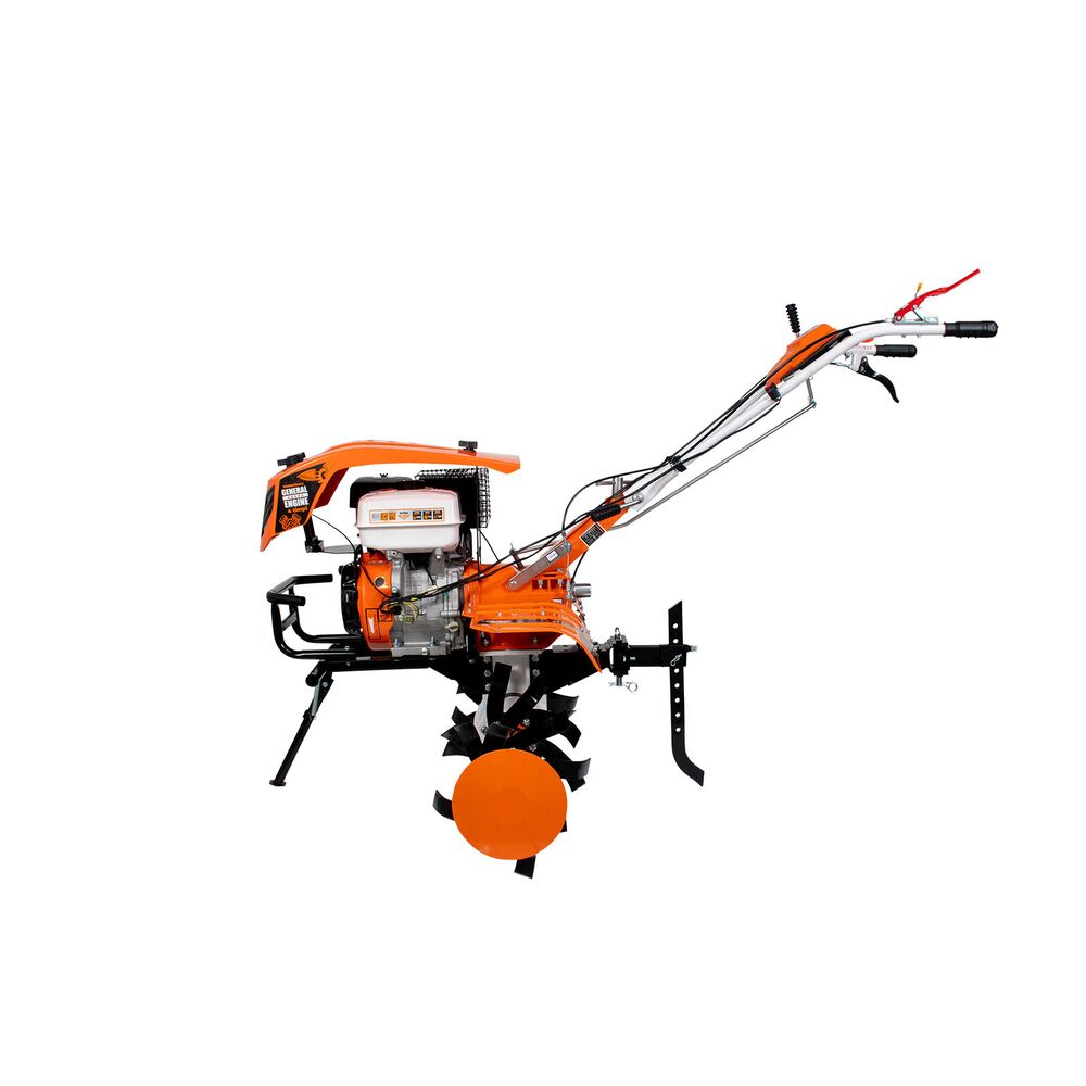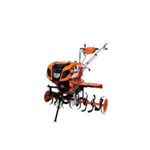 Dotaz na produkt Na splátky ještě dnesBenzínový kultivátor pro obrábění velkých ploch s motorem General Engine o výkonu 15 HP, vybavený LED osvětlovacím systémem, který umožňuje jeho použití i při zhoršené viditelnosti nebo po setmění. Pracovní hloubka může dosáhnout 360 mm a příslušenství, které je součástí balení, pomáhá při orbě, setí nebo přípravě setí. Pracuje se 3 rychlostmi, 2 vpřed a 1 vzad. Řadicí páka je umístěna na úrovni rukou, což umožňuje snadnější volbu požadované rychlosti. Skříň převodovky nevyžaduje speciální údržbu a může být použita na všech druzích půdy. Dokážepotáhnout přívěs s 1000 kg nákladem. Je vyroben z tvárné litiny, odolný vůči nárazům a mechanickému opotřebení. Dokáže zpracovat i ty nejtěžší půdy přiloženými ocelovými frézami. Snadno ovladatelný, ovládá se jednoduše díky vzhůru nastavitelným kovovým madlům a gumovým rukojetím určeným k tlumení vibrací generovaných motorem.