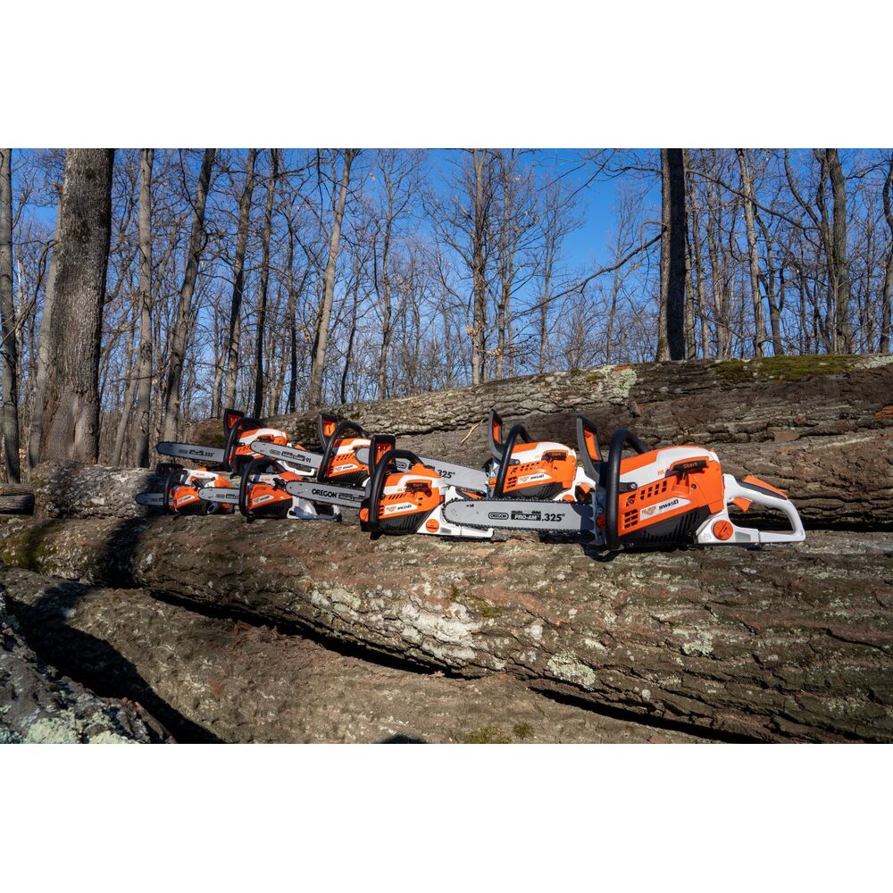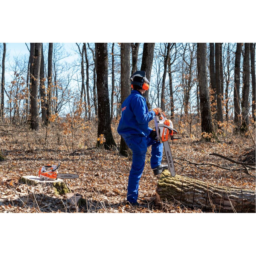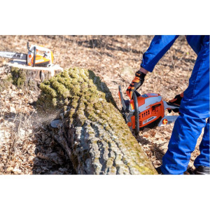 Řetězová pila s extrémně vysokým výkonem pro profesionální prořezávání a zpracování velkých stromů, pro řezání tvrdého dřeva, pro práce ve stavebnictví, pro řezání palivového dřeva a pro lesnictví.
