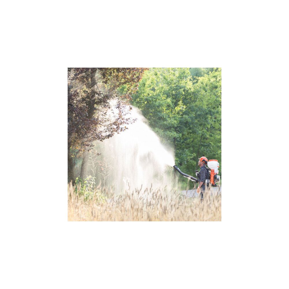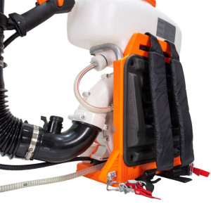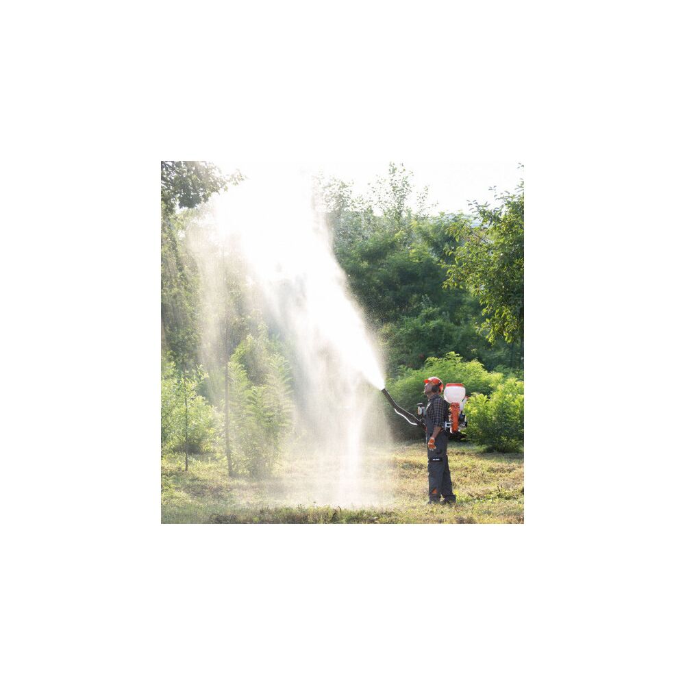 Zařízení je vybaveno nádrží o objemu 14 litrů, pro použití s tekutinami i granulemi. Rosič využívá posilovacího čerpadla, které umožňuje postřik při 90 stupních pro ošetření stromů. Horizontální vzdálenost postřiku je za normálních podmínek 12 metrů a maximální výška dosahuje až 10 metrů. Pro velmi jemný sprej má rosič soupravu sestávající z kapalinového filtru a vstřikovací trysky, který napomáhá optimálnímu rozptylu, čímž se předchází nežádoucím ztrátám postřiku. Toho lze dosáhnout umístěním jednoho ze šesti otvorů ve filtru umístěném na dělícím krytu, který zakrývá trysku vstřikovače. Tryska a filtr se používají pouze na tekuté látky. Ergonomická multifunkční rukojeť s ovládacími prvky START/STOP, plyn, který umožňuje nastavit akceleraci, aniž by se musel neustále mačkat. Tlumič se nastaví na požadovanou úroveň, přičemž během používání se udržuje stejná rychlost. Polstrované popruhy a polstrovaná záda, které dokonale rozkládají váhu zařízení.