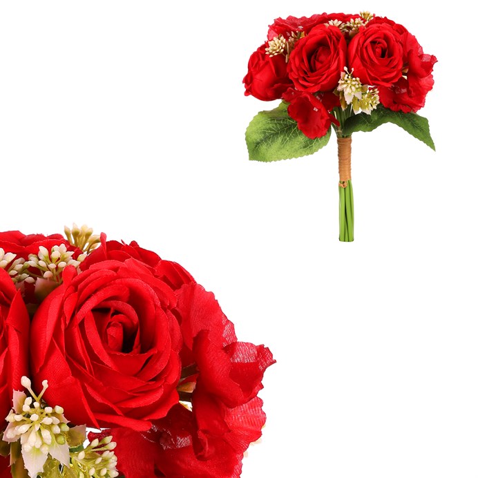 Dotaz na produktNaše umělá kytice sestavená z červených růží a hortenzií je ideální volbou pro různé společenské události, nebo jako trvalá květinová dekorace do vašeho domova. S realistickým vzhledem a nikdy neuvadajícími nádhernými květy a lístky, poskytuje elegantní a trvanlivou ozdobu. Můžete ji umístit na stůl jako středovou dekoraci do slušivé vázy, kde se její krása ještě umocní. Tato kytice přináší do vašeho prostoru šarm květinové zahrady bez starostí o údržbu.