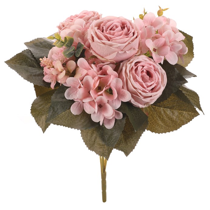 Dotaz na produktUmělá kytice kombinuje růžové růže a hortenzie v jemných odstínech, které věrně napodobují přírodní květy. Textilní materiál květin zajišťuje dlouhodobou stálost barev a snadnou údržbu. Kytice je doplněna tmavě zelenými listy s přirozenou texturou, které podtrhují celkový vizuální efekt. Vynikne jako dekorace na stole, v květináči nebo jako součást aranžmá v interiéru. Je vhodná pro všechny, kdo hledají trvalou květinovou dekoraci bez nutnosti péče.