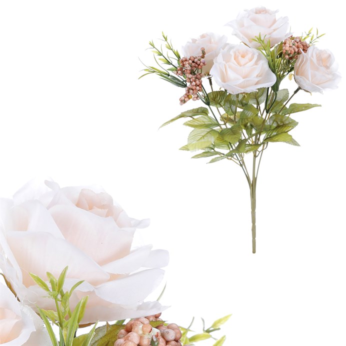 Dotaz na produktPřineste do svého prostoru prvek přírodní krásy a elegance díky umělým kyticím z naší pestré nabídky. Každý produkt včetně kytice krémových růží je vytvořen s důrazem na detaily, což napomáhá velmi realistickému vzhledu. Použití této květinové dekorace je univerzální a hodí se pro širokou škálu příležitostí a na různá místa, dle vaší fantazie. Můžete si zkrášlit svůj domov nebo kancelář bez toho, aniž byste museli mít obavy, že vám kytice uvadne. Umístěte ji do krásné vázy na stůl, na polici, na komodu nebo i na zem a vytvořte si prostor plný neutuchající krásy a svěžesti po celý rok. Ať už se jedná o jakoukoli příležitost či událost, nebo si chceme zkrášlit svůj prostor, naše umělé kytice jsou perfektním doplňkem pro přenesení nádherného květinového prvku do takových míst.