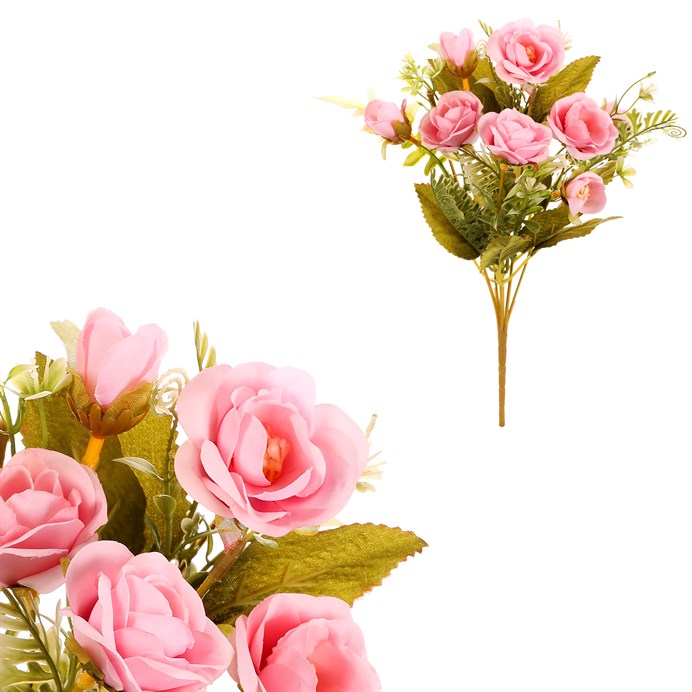 Dotaz na produktKytice umělých růží s růžovou barvou květů bude působivou květinovou dekorací. Její krása časem neuvadne a můžete tak využívat tuto umělou květinu opakovaně, nebo ji mít jako trvalou ozdobu. Vynikne sama o sobě v pěkné váze, nebo může být součástí ucelené květinové výzdoby pro různé oslavy, či jiné společenské události. Nemusíte si dělat starosti s údržbou a zaléváním, neboť jako umělá, nepotřebuje žádnou péči, a přitom vypadá fantasticky. Je věrohodnou kopií živé varianty, a tak při letmém pohledu na ní, ji ani nerozeznáte od originálu.
