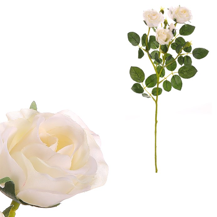 Dotaz na produktKrémově zbarvená růže s poupaty, jako umělá řezaná květina, přináší trvalou nadčasovou eleganci a romantiku do každého prostoru a pro každou událost. Díky detailnímu zpracování květů i dalších částí rostliny vypadá skutečně jako živá. Budete si tak moci užívat její krásy natrvalo a bez obav, že by vám uvadla.