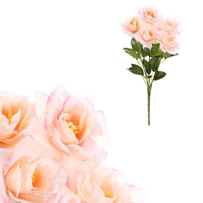 Dotaz na produktPlánujete natrvalo vyzdobit květinami interiér vašeho domu, nebo snadno a rychle místo, kde bude probíhat oslava či jiná společenská událost? V tom případě bude pro vás varianta umělé květiny skvělou volbou. Nikdy vám neuvadne a můžete ji používat opakovaně. Umělé květiny a rostliny jsou věrnými kopiemi těch živých, které vydrží v plné kráse bez starostí a péče prakticky na věky. Nechť je pro vás inspirací k vysněné výzdobě právě tato kytice růží s meruňkově zbarvenými květy. Můžete ji nechat vyniknout samostatně v pěkné váze nebo začlenit do vašich rozsáhlejších dekoračních projektů.