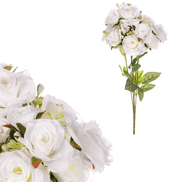 Dotaz na produktTato exkluzivní umělá kytice růží bílé barvy je vhodná pro rozmanité příležitosti. Hodí se na výzdobu nejrůznějších oslav, společenských událostí a dalších. Může ale být i sama o sobě pěknou ozdobou u vás doma. Krása této kytice vyzařuje do okolí, a zvolením vhodné vázy ji ještě umocníte. Její nespornou výhodou je, že její trvalá krása nikdy neuvadne. Každý květ v této kytici je pečlivě vytvořen tak, aby vypadal jako živý a v plném rozkvětu. Získáte nádhernou květinovou výzdobu, která vydrží na věky bez nutnosti údržby a péče.