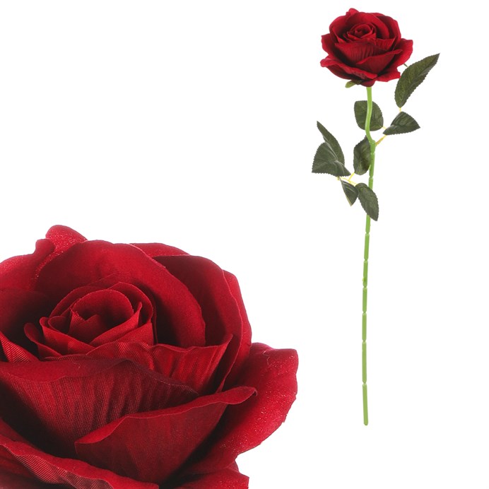 Dotaz na produktUmělá řezaná růže v červené barvě je vyrobena z textilu, který věrně napodobuje strukturu a vzhled skutečných okvětních lístků. Dlouhý stonek je doplněn několika zelenými listy, které přispívají k přirozenému vzhledu květiny. Díky svému provedení je vhodná pro aranžmá v interiérech, kde přináší trvalý dekorativní efekt bez potřeby údržby. Červená barva dodává prostoru živost a výrazný vizuální efekt. Ideální je pro použití v květinových vazbách, dekoracích stolů nebo jako samostatný dekorativní prvek.