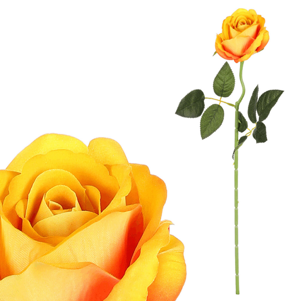 Dotaz na produktUmělá řezaná růže v žlutém odstínu přináší do interiéru příjemný barevný akcent s dlouhotrvajícím efektem. Květina je vyrobena z textilu, který věrně napodobuje strukturu a jemnost okvětních lístků. Zelené listy doplňují celkový vzhled a dodávají přirozený dojem. Díky své výšce a tvaru je vhodná pro aranžmá ve váze nebo jako samostatný dekorativní prvek.