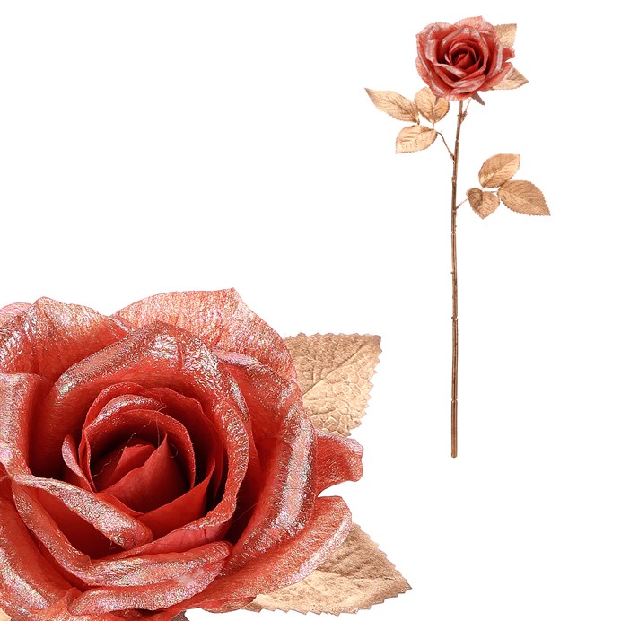 Dotaz na produktUmělá růže s meruňkovými květy a pozlacenými lístky vnese do vánoční výzdoby jemnost a eleganci. Skvěle se hodí pro aranžování svátečních dekorací, kde její třpytivé detaily krásně vyniknou. Trvalá krása, která vydrží a nepotřebuje žádnou zvláštní péči. Můžete tak tuto umělou květinu v netradičním barevném pojetí používat pro aranžování i v dalších sezónách.
