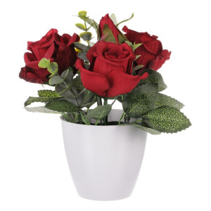 Dotaz na produktKvětiny mají pozitivní dopad na lidskou mysl a emocionální stav. Dokážou zlepšovat náladu, snižovat míru stresu a přinášet radost. I umělé květiny, pokud jsou precizně vyrobeny s důrazem na detaily, mohou vyvolat podobný účinek, a navíc zcela bez starostí. Umělé červené růžičky v elegantním plastovém obalu budou pro vás skvělou volbou. Pečlivé provedení detailů s příjemnými barvami v kombinaci s krásným obalem bude tvořit nádhernou trvalou dekoraci. Květina vypadá velmi realisticky a vynikne na okenním parapetu, stole nebo jakémkoli jiném viditelném místě.