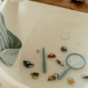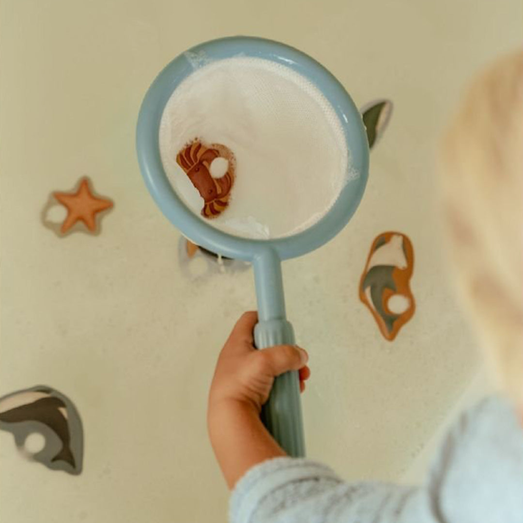 Hra podporuje soustředění, koordinaci pohybů a přirozenou zvídavost. Rukojeti prutu i síťky lze snadno odšroubovat, což usnadňuje skladování a přenášení. Ideální způsob, jak spojit hru s učením a zpestřit každé koupání.