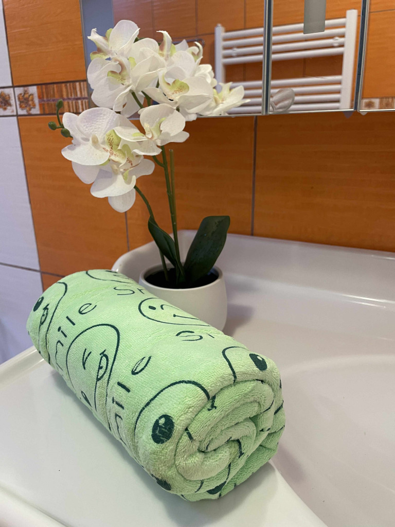Osuška Smile je vyrobena ze 100% mikrovlákna s gramáží 160 g/m². Je jemná na dotek, skvěle absorbuje vodu a velmi rychle schne.