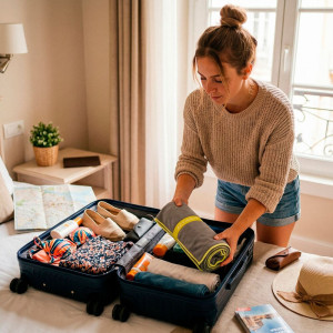 Součástí balení je také cestovní obal se stahovacím poutkem, který zajišťuje čisté a úsporné uložení. Ideální pro snadné přenášení a organizaci.