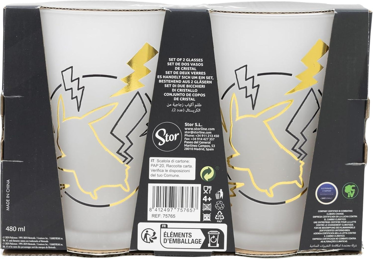Dárková sada 2 ks velkých skleniček s motivem Pokémon o objemu 480 ml.