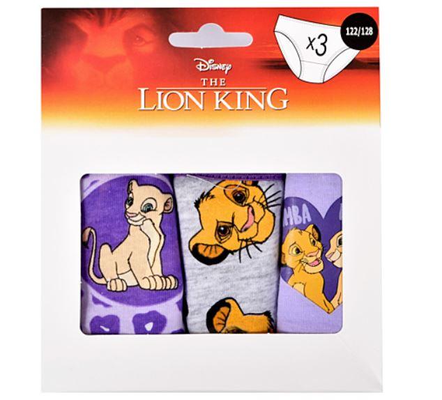 Sada 3 ks dívčích kalhotek s motivem Lví král. Materiál: 100% bavlna. Výrobce: Erve. VAN DER ERVE NV Weiveldlaan 41 bus 21 1930 Zaventem Belgium supportUK@erve.com
