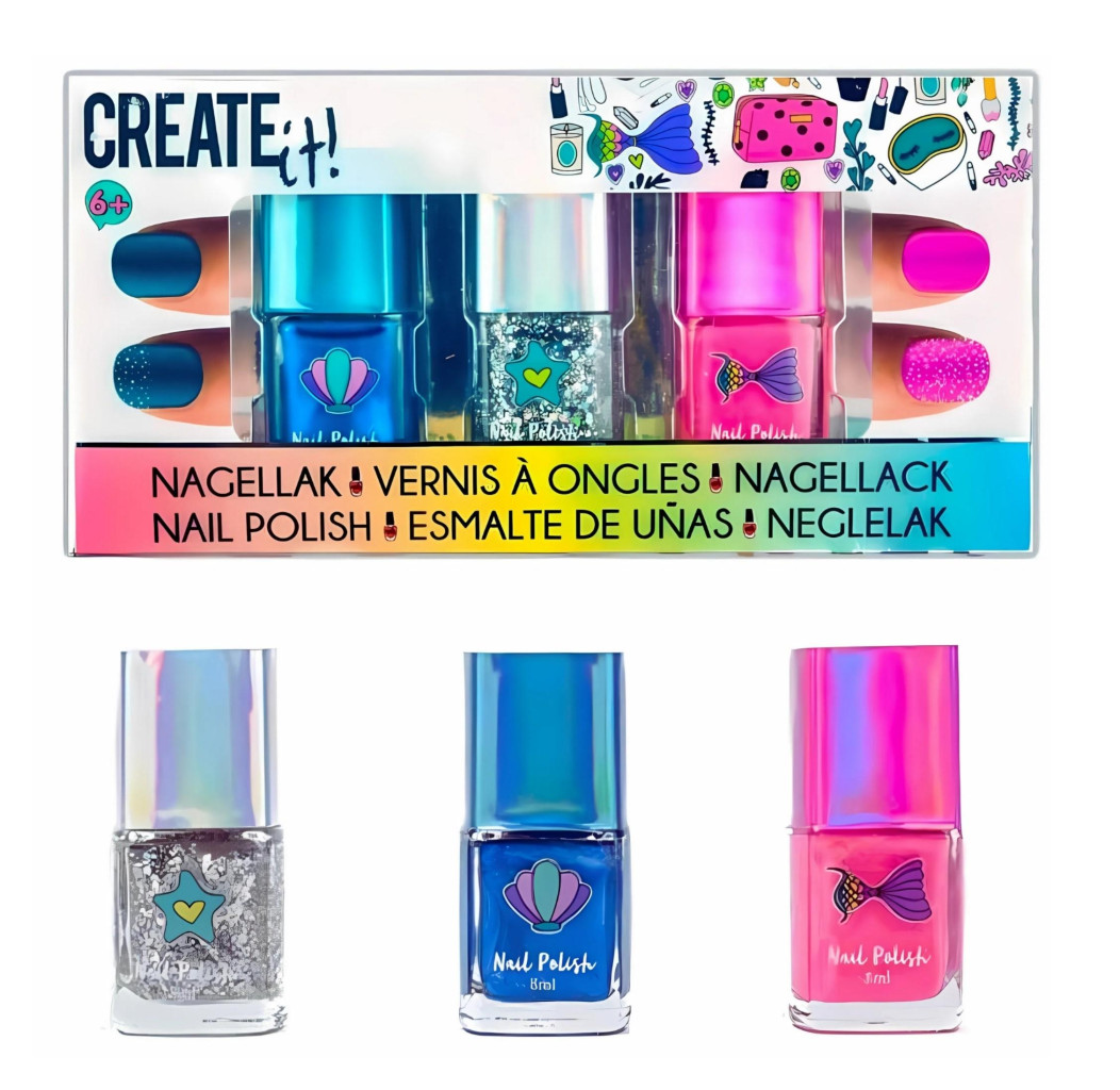 Sada 5 ks lak na nehty Create it se zdobivými konfety. Rozměr balení: 15 x 7,5 cm. Obsahuje: 3 x 8 ml. Věkově: 3+. Výrobce: Create it.